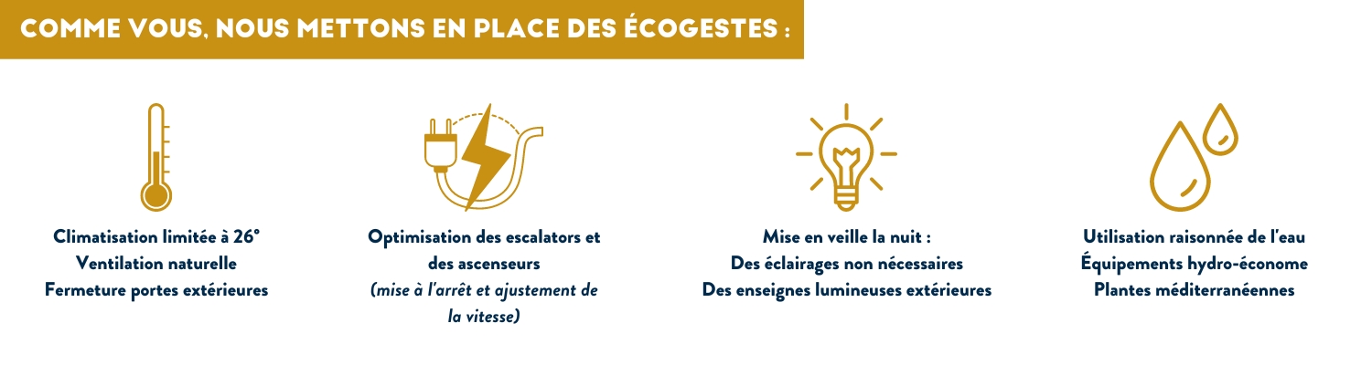 Depuis 2010, plus de 40% d’économies d’énergie* ont été réalisées en mettant en place des équipements moins consommateurs (LED, nouveaux équipements de chauffage, optimisation de la gestion des équipements électriques) et en ayant recours à une gestion plus fine de ces équipements.